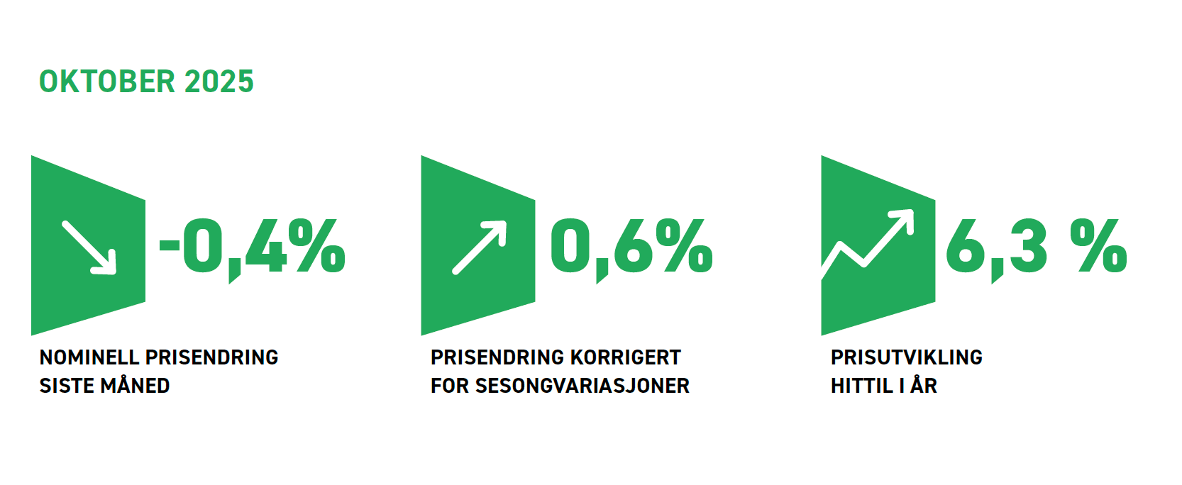 Boligprisene sank med 0,4 prosent i oktober 2025. Korrigert for sesongvariasjoner steg prisene med 0,6 prosent