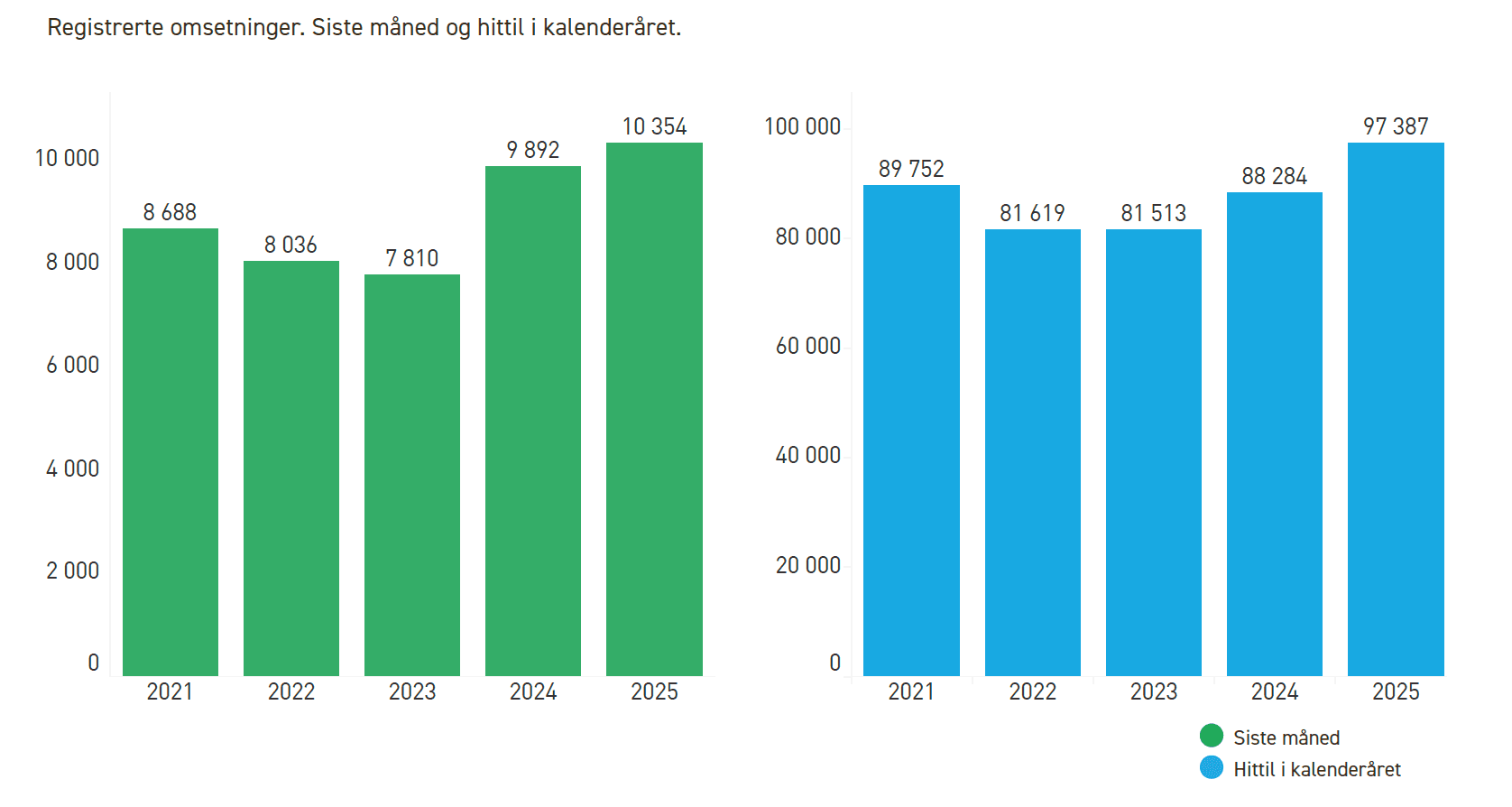 I oktober ble det solgt 10.354 boliger i Norge, noe som er 4,7 prosent flere enn i oktober 2024.